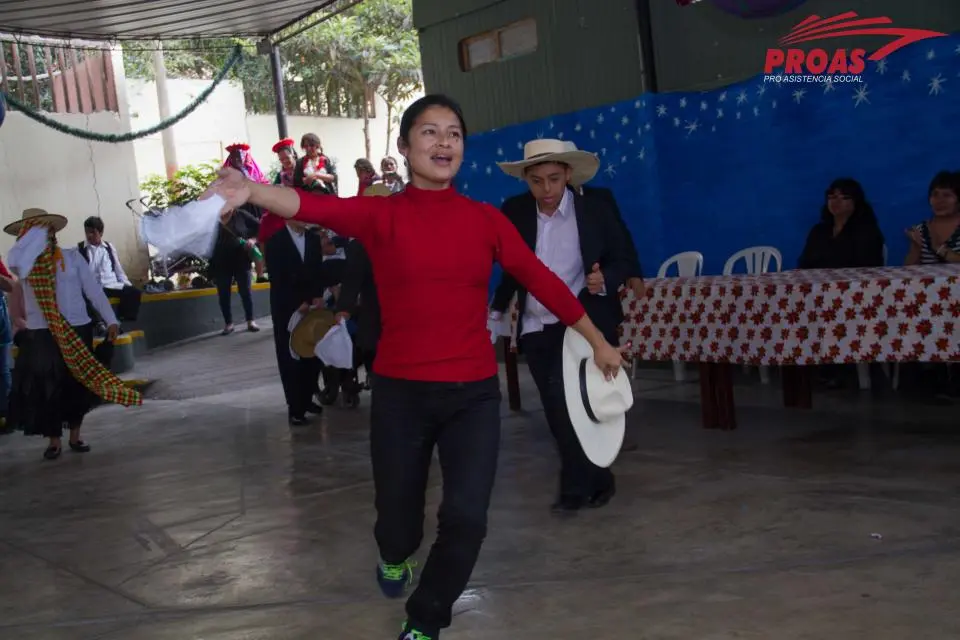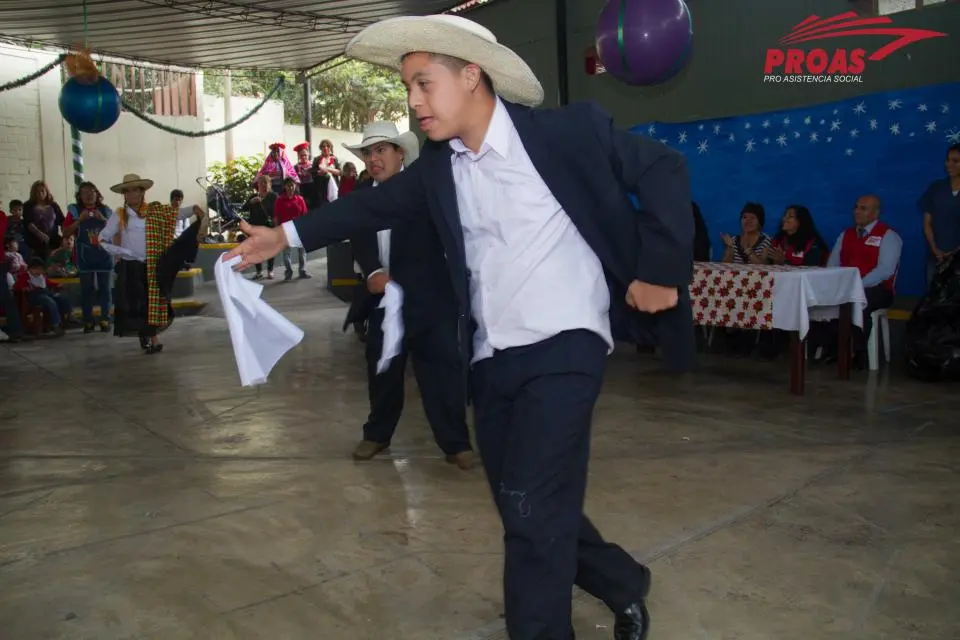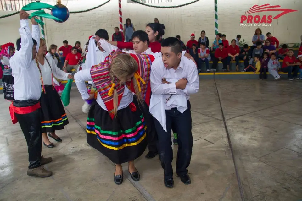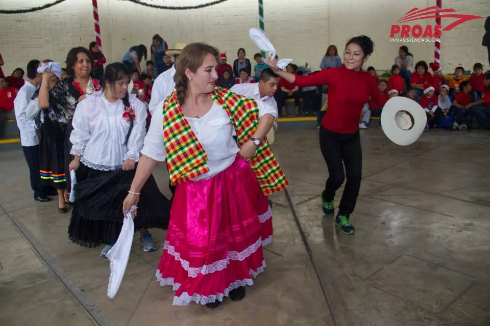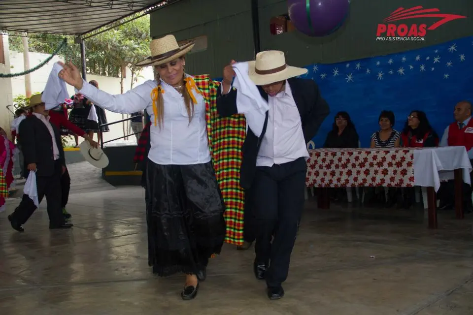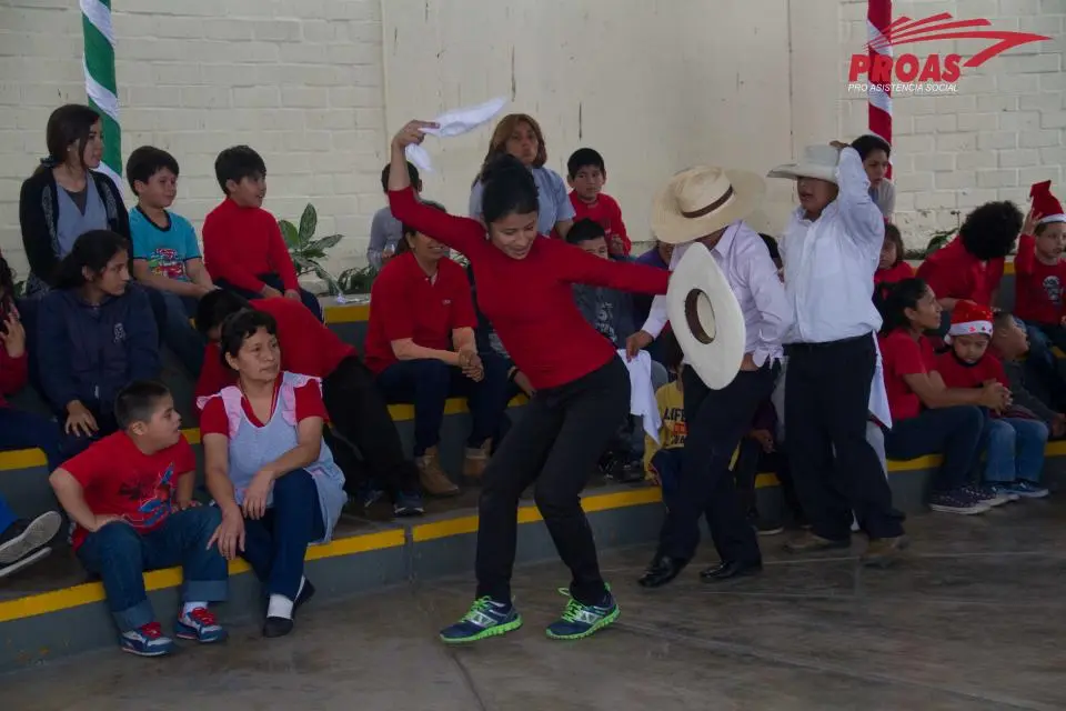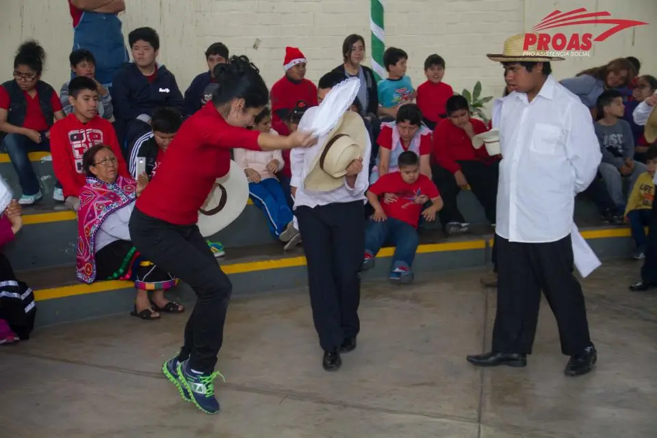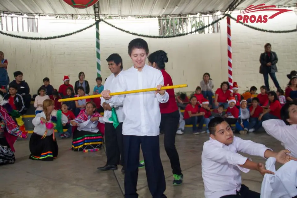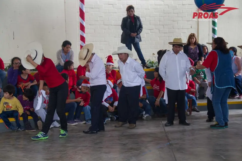 Los pequeños del Centro de Educación Básica Especial María Auxiliadora, ubicado en Surco, nos sorprendieron gratamente con la presentación de sus danzas de diversas partes del país. Proas les hizo entrega de juguetes para cada uno de ellos con motivo de la Navidad. Enla vista la Sra. Martha García Sánchez y Joaquín Ortiz.