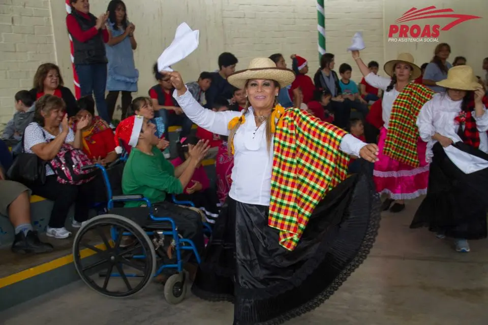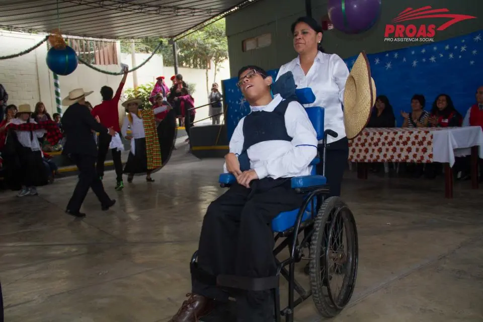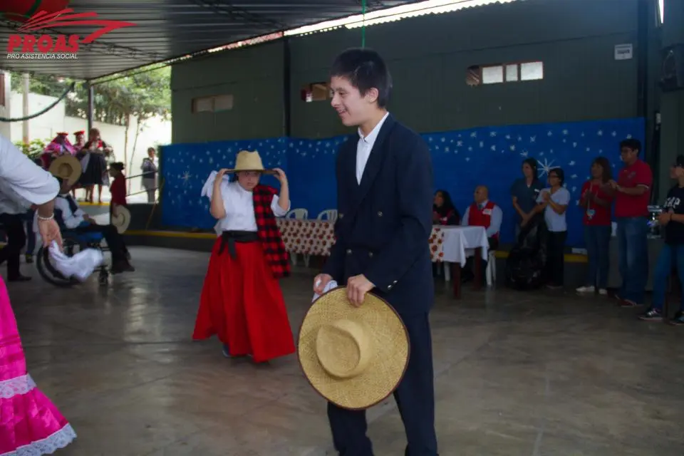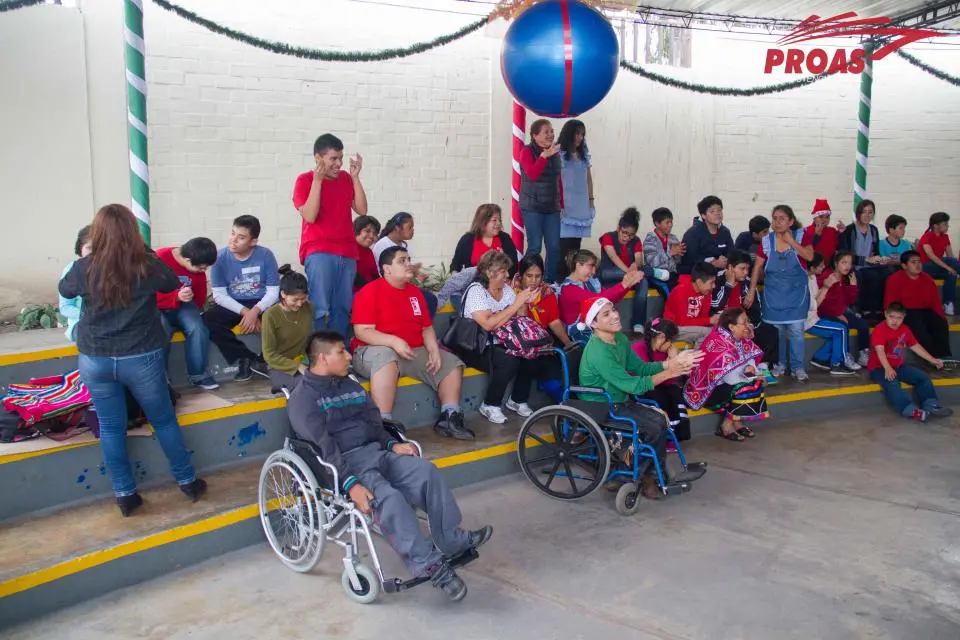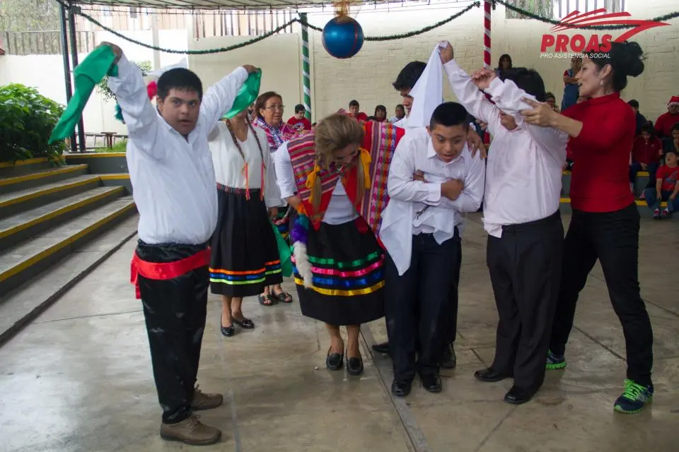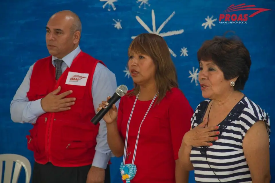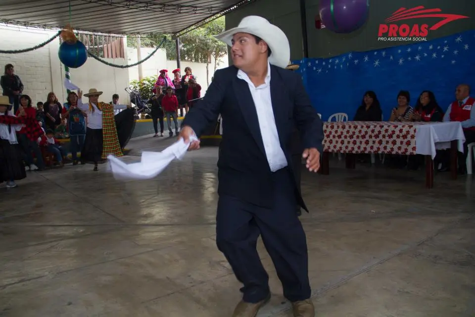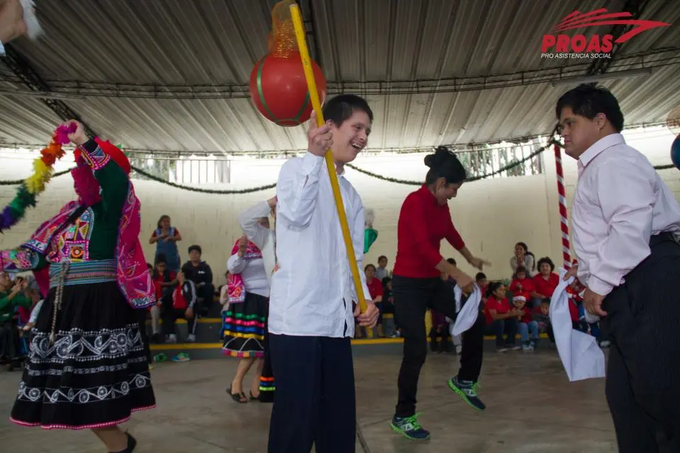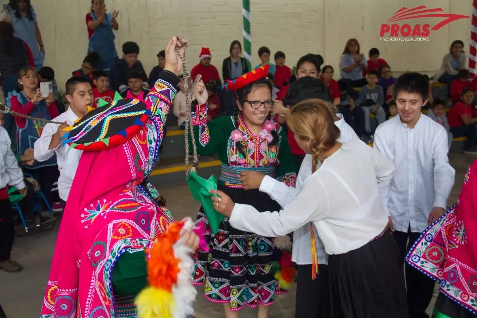 Los pequeños del Centro de Educación Básica Especial María Auxiliadora, ubicado en Surco, nos sorprendieron gratamente con la presentación de sus danzas de diversas partes del país. Proas les hizo entrega de juguetes para cada uno de ellos con motivo de la Navidad. Enla vista la Sra. Martha García Sánchez y Joaquín Ortiz.