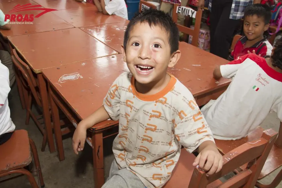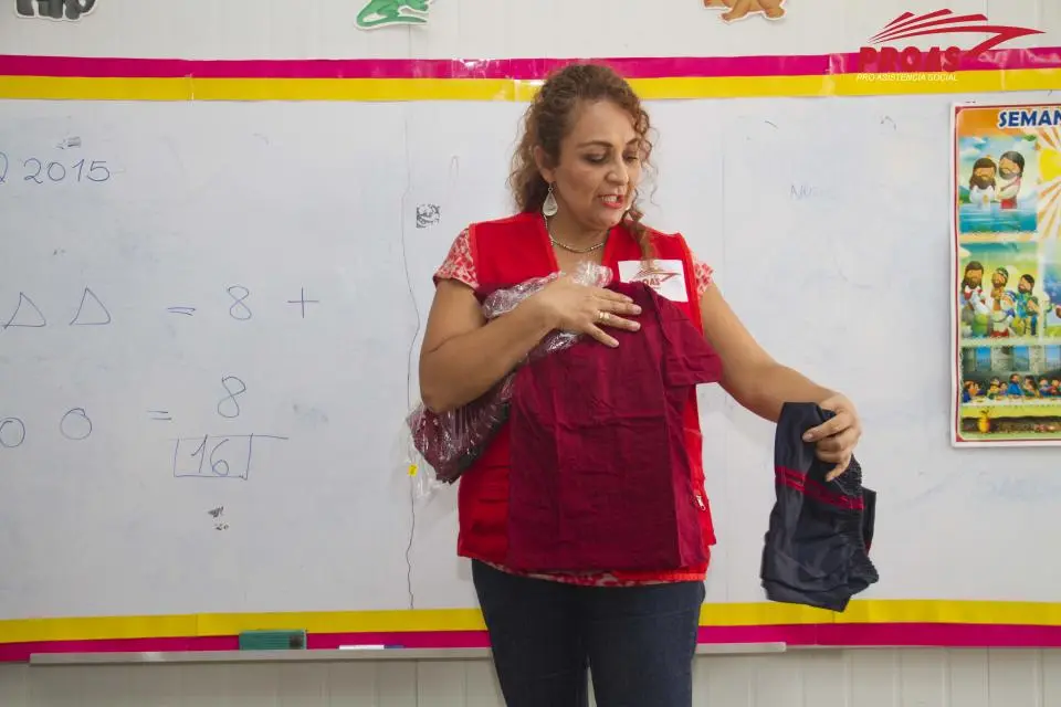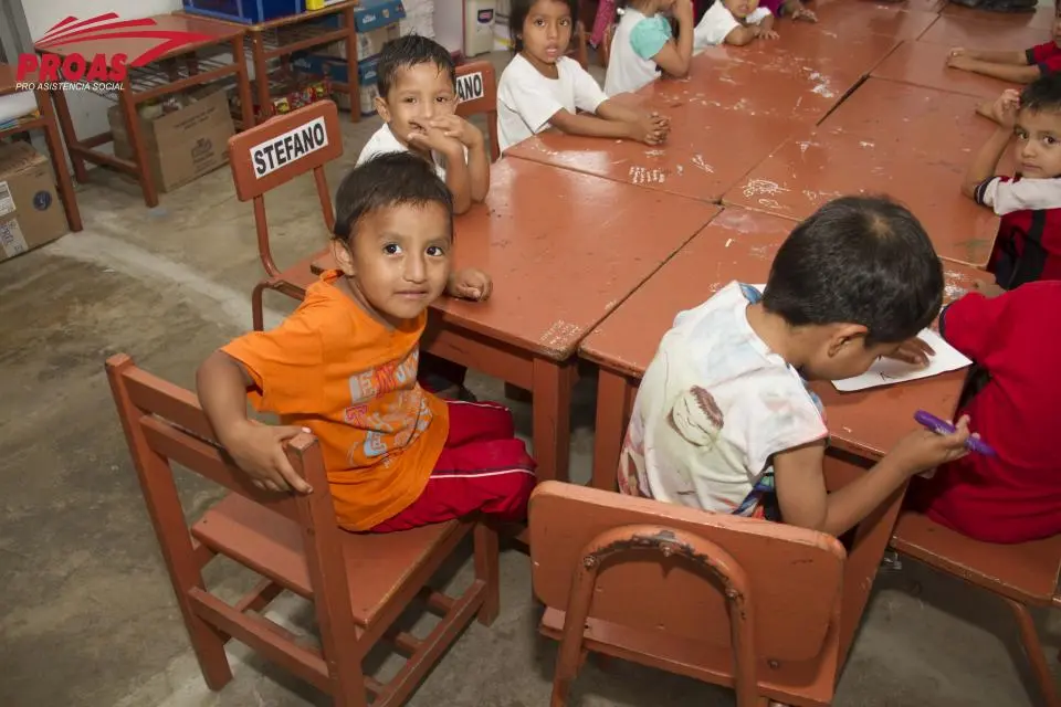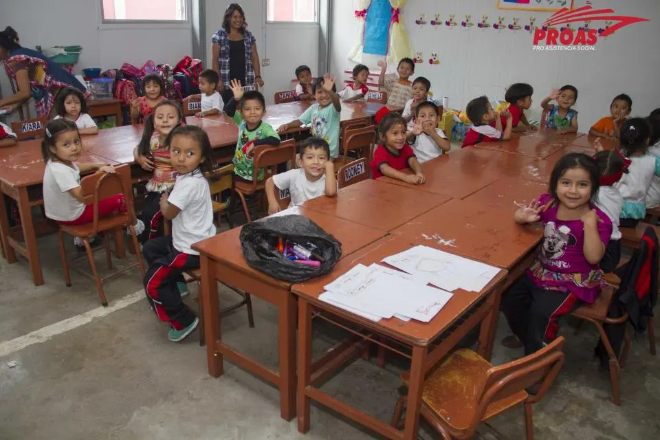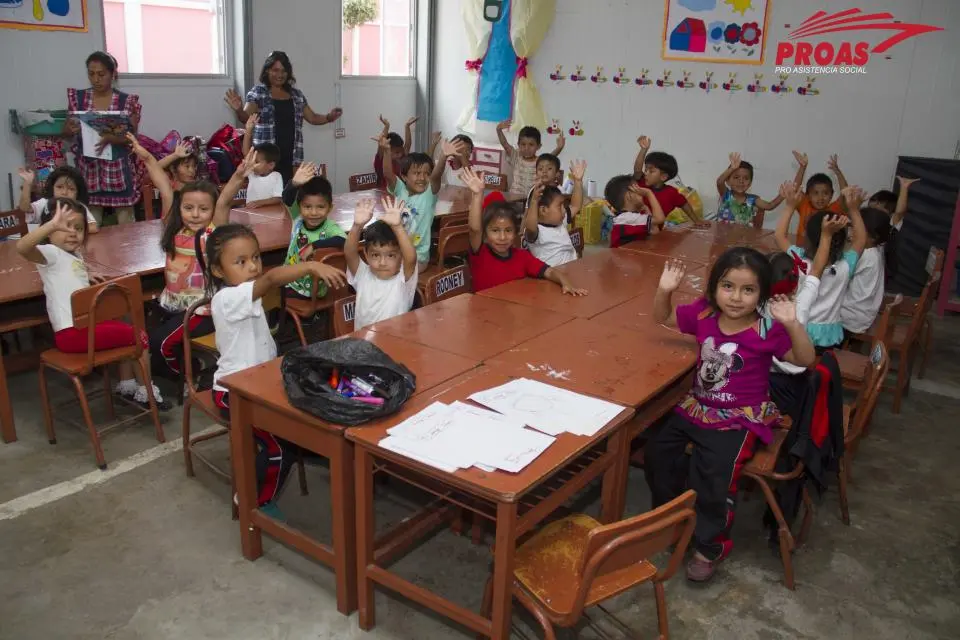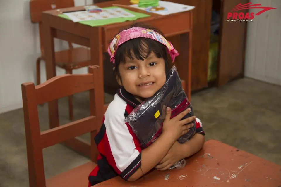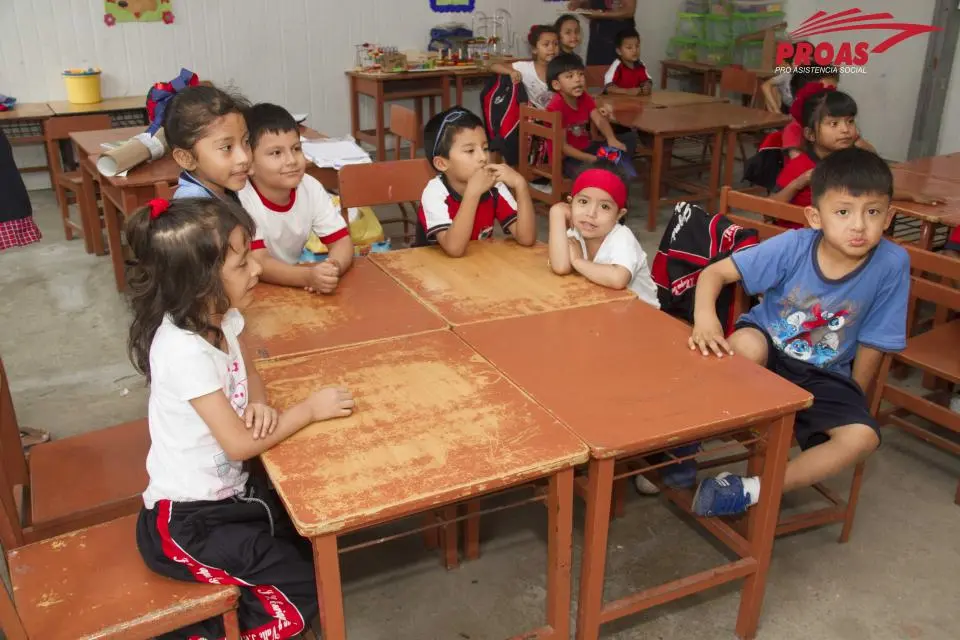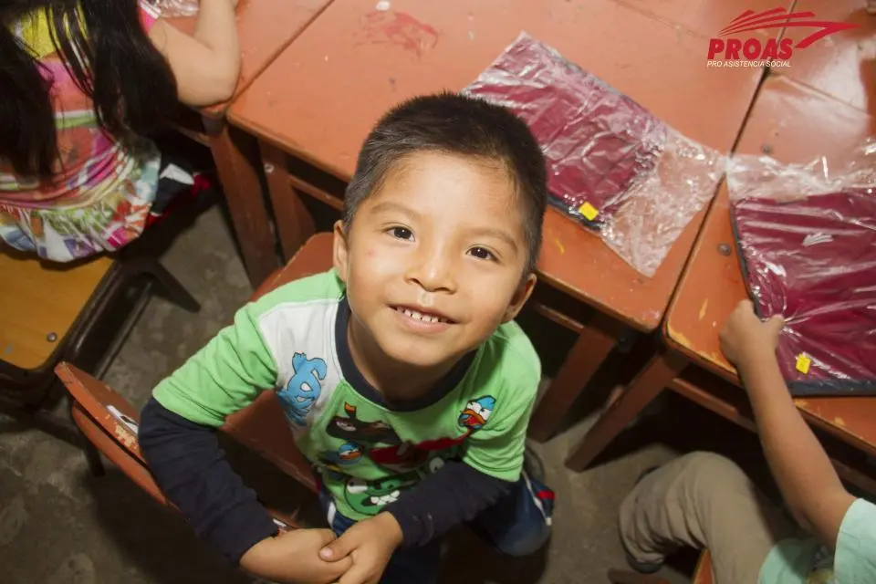 Los niños de 3 a 5 años del Colegio Enrique Guzmán y Valle de Los Olivos (ubicado en el Parque Naranjal) fueron beneficiados con ropa deportiva de verano para que puedan sentirse más cómodos en esta temporada de calor intenso. Más de un centenar de niños recibieron con alegría sus obsequios. En la vista la Sra. Teresa Altamirano y Joaquín Ortiz, de Proas, junto con la Sub Directora, Srta. Lilian Letona Pérez y el Sr. Pablo Portal Reátegui, Director de dicho centro de estudios.